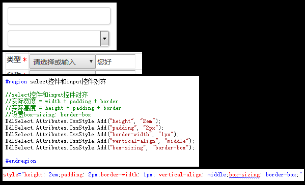 html中的Select组件与input组件两个元素的宽度高度跟设定值不一致与对齐问题。